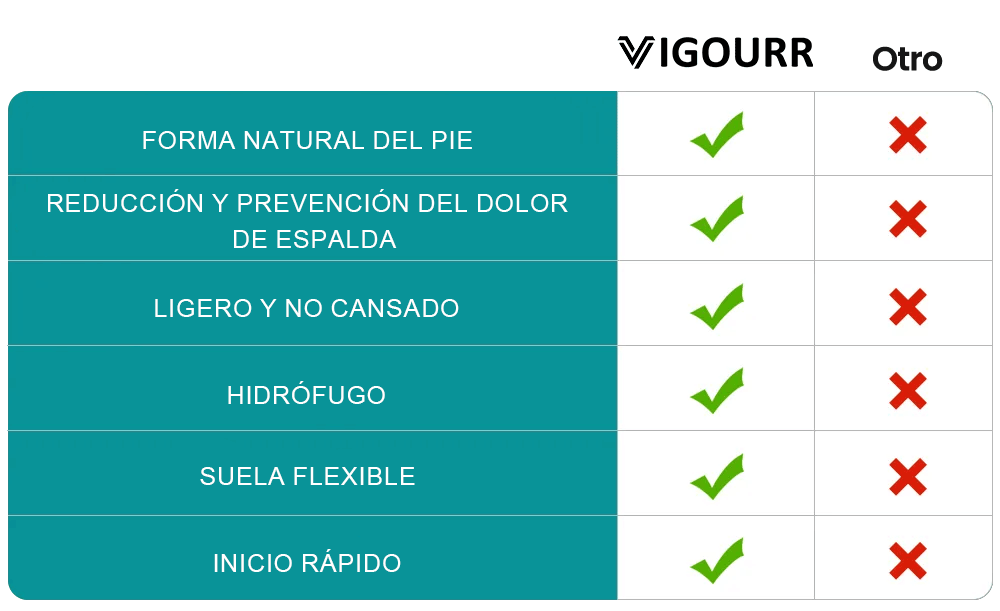 Sobre esta base nace VIGOURR. Miles de clientes ya han recuperado el placer de caminar sin dolor. Hazle un favor a tus pies: no te conformes, elige la salud, elige VIGOURR.